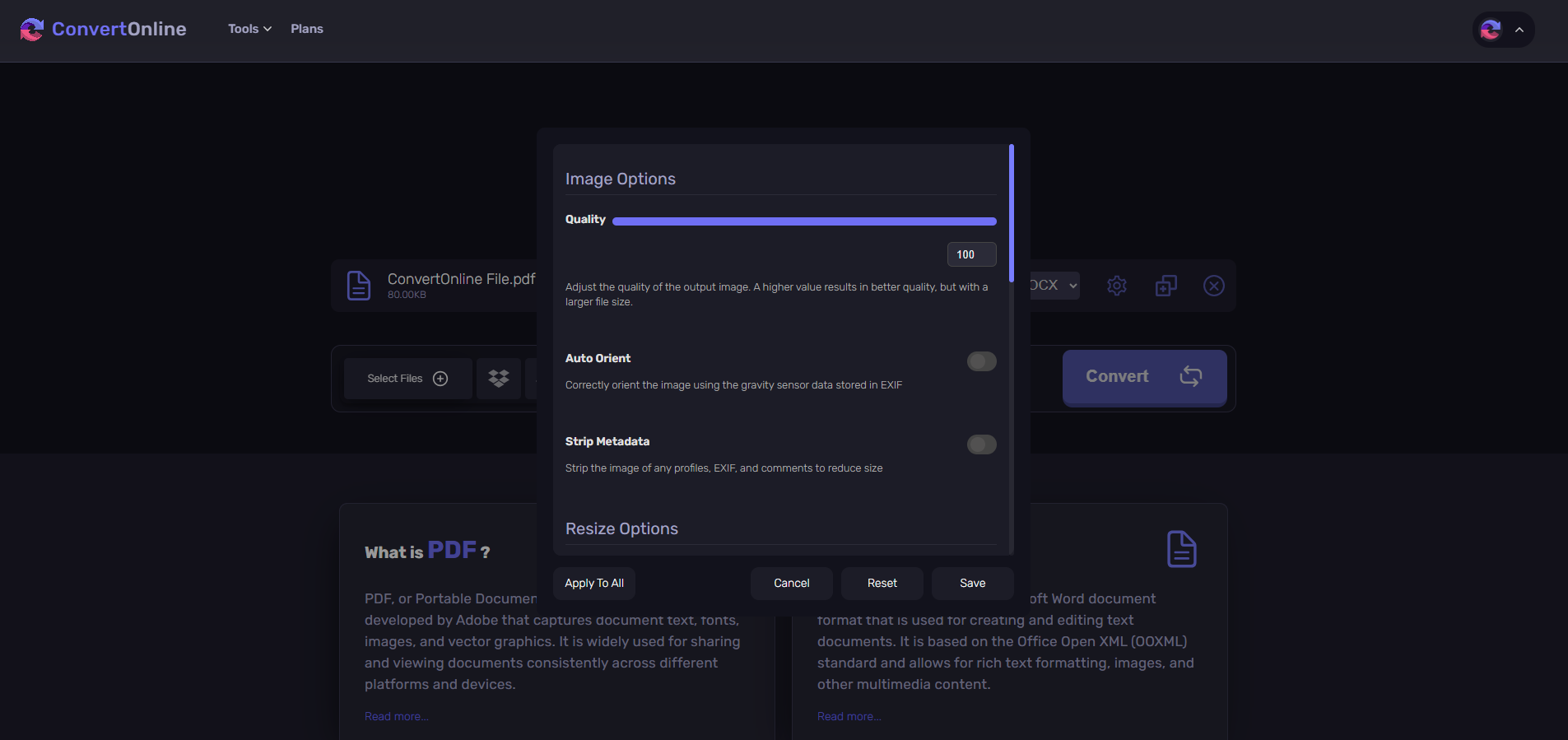 Optionally, you can choose the conversion settings and customize the output DOCX file to your liking. Select Image Options, Resize Options, or Image Crop Options.